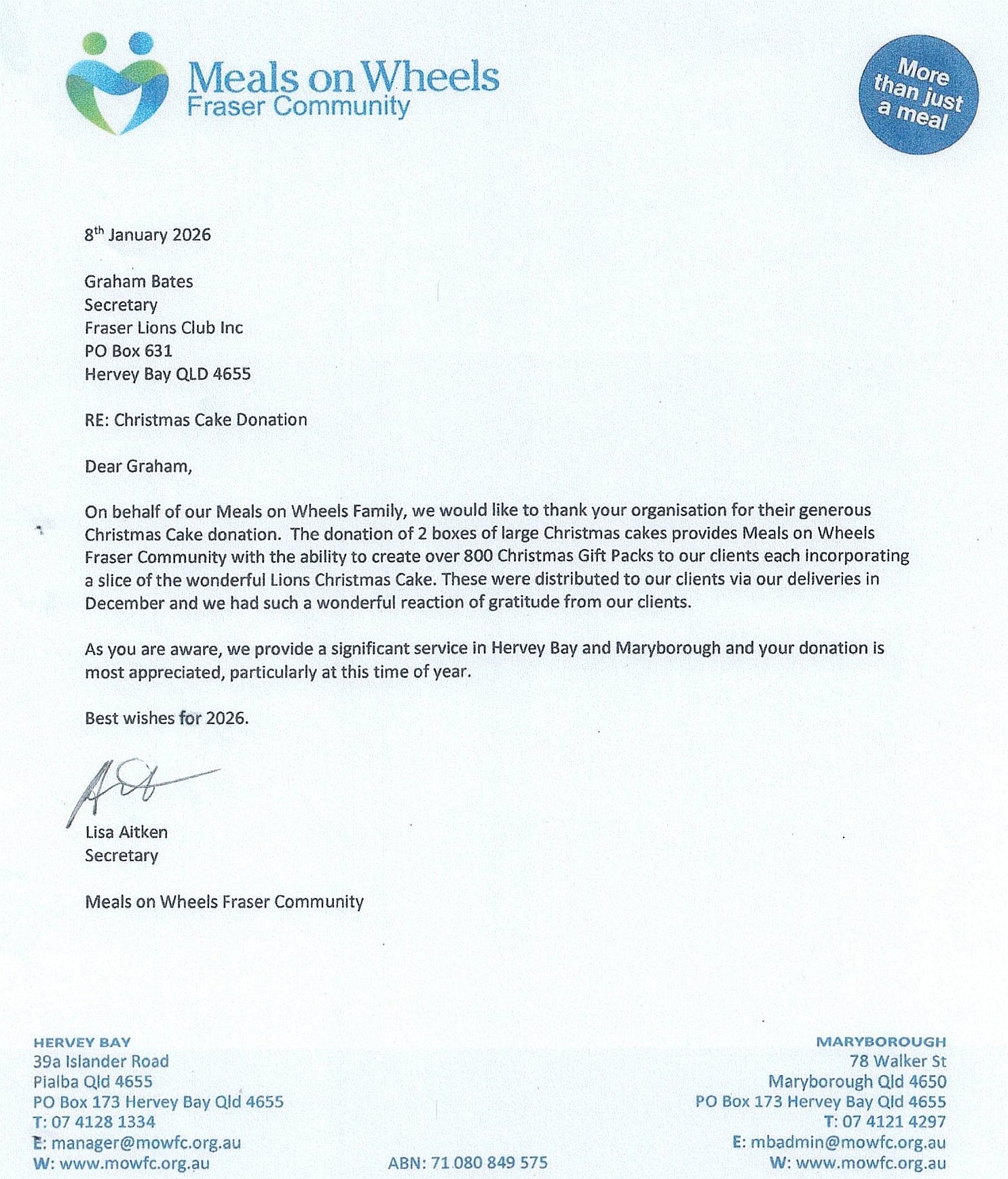 Lions Christmas Cake Donations (>$1450 worth)